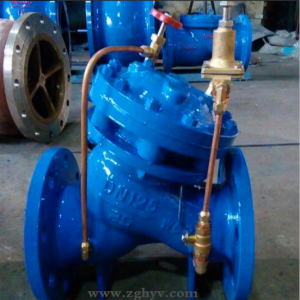 水力控制閥就是用水壓控制的閥門,它由一個(gè)主閥及其附設(shè)的導(dǎo)管、導(dǎo)閥、針閥、球閥和壓力表等組成。根據(jù)使用目的、功能及場所的不同可演變成遙控浮球閥、減壓閥、緩閉止回閥、流量控制閥、泄壓閥、水力電動控制閥等。