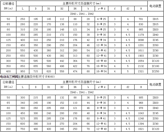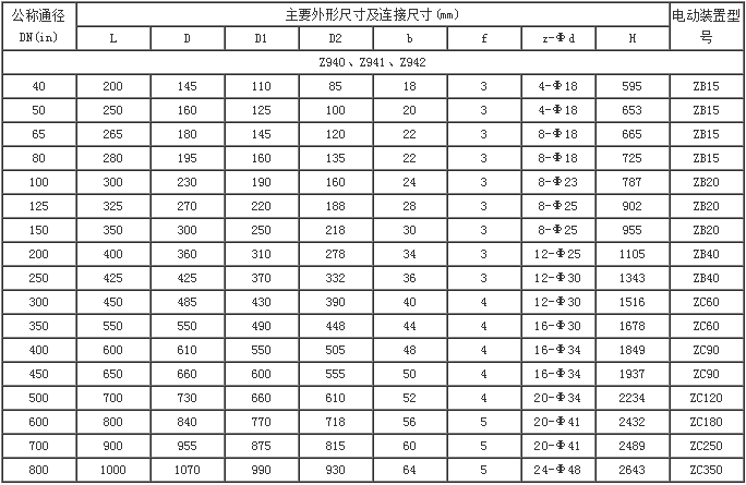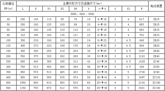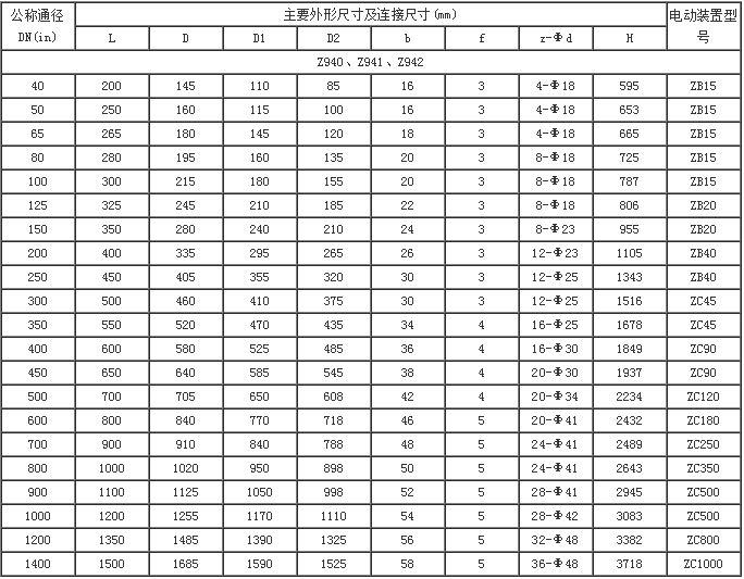 電動法蘭閘閥主要連接及外形尺寸(PN40)