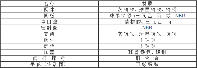 明桿閘閥,RRHX(Z41X)明桿彈性座封閘閥要零部件材質(zhì):