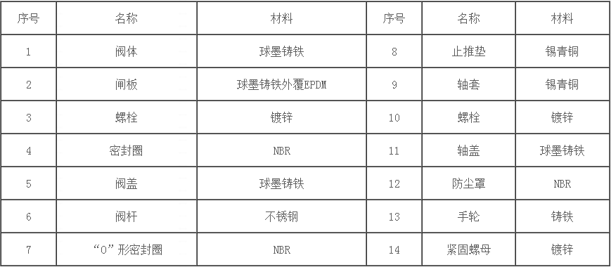3、可靠的衛(wèi)生性環(huán)氧樹脂符合衛(wèi)生標(biāo)準(zhǔn)GB/T17219-1998,閘板整體包覆符合衛(wèi)生檢驗的橡膠;閥桿、閥桿螺母等零件采用不受水腐蝕的不銹鋼或青銅等到材料。