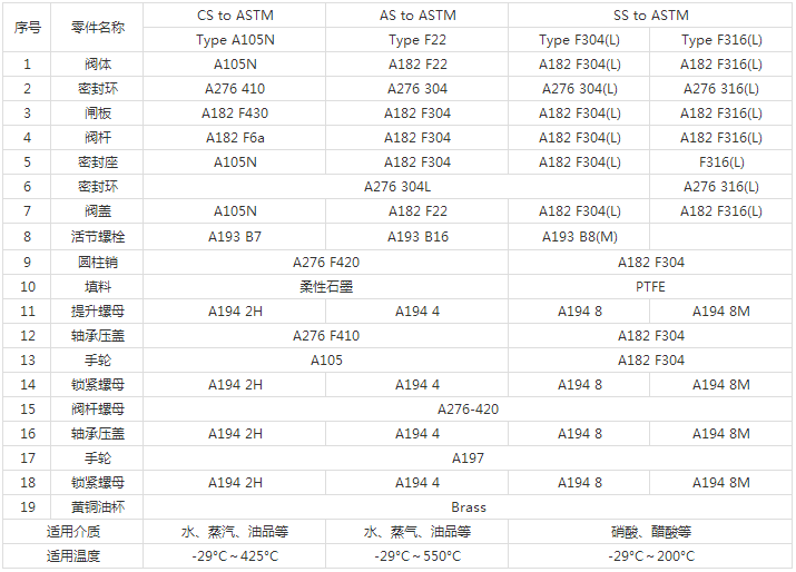法蘭壓力自緊式閘閥標(biāo)準(zhǔn)材質(zhì)明細(xì)表