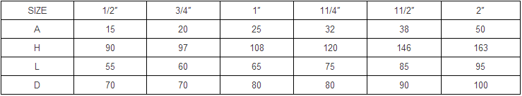 不銹鋼內(nèi)螺紋閘閥主要連接尺寸及重量: