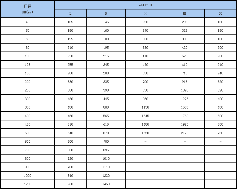 Z41T明桿閘閥結(jié)構(gòu)圖及主要外形尺寸(法蘭尺寸按 JB78 PN1.0MPa規(guī)定):