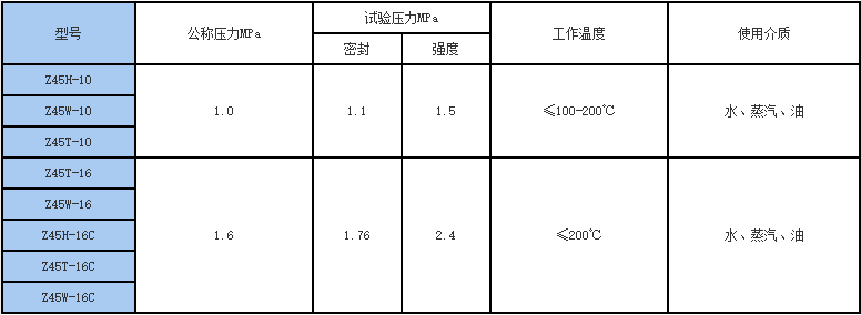 暗桿楔式鑄鐵閘閥主要技術(shù)參數(shù):