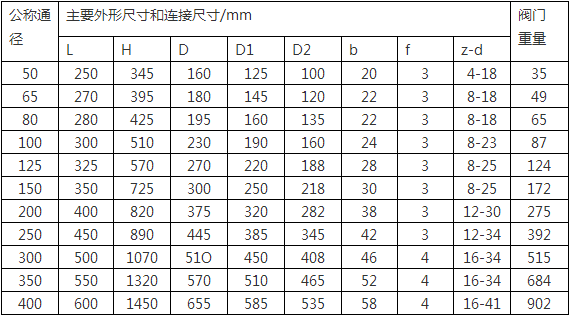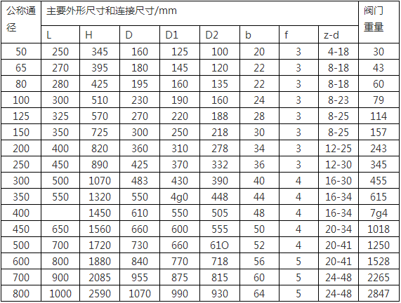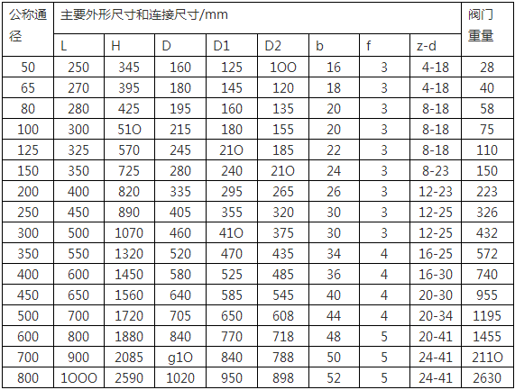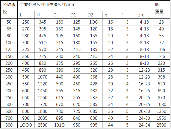 NKZ41H (NKZ44H) 2.5Mpa主要尺寸及重量