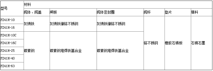 【PZ41H排渣閘閥-主要零件材料】