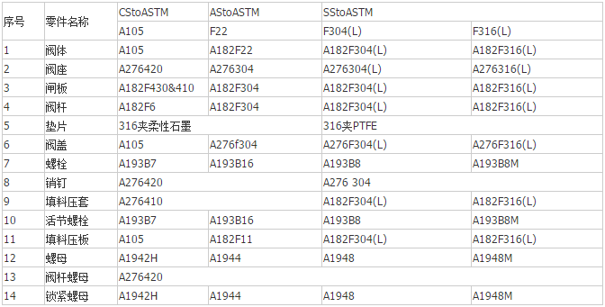 內(nèi)螺紋與承插焊閘閥標(biāo)準(zhǔn)材質(zhì)細(xì)表 :
