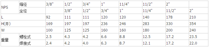 內(nèi)螺紋與承插焊閘閥寸(MM)和重量(KG)