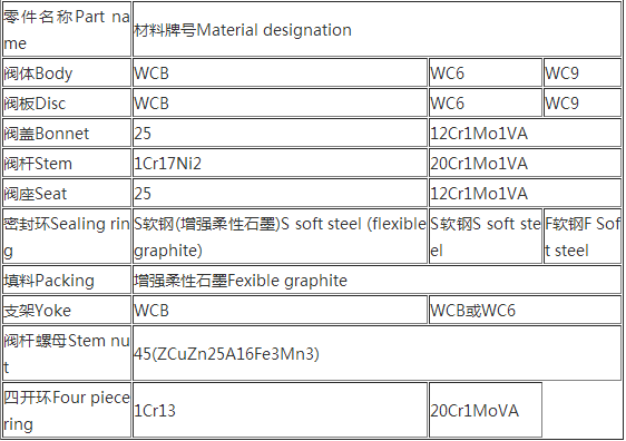 | 閥體材料 | V型銘鉬釩鋼ZG20CrMoV或ZG15CrMoV |