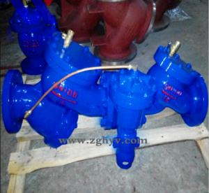 (3)如供水過程中供水壓力不斷下降,則排水器隔膜上部壓力下降,安全排水器控制彈簧推動閥芯打開排水器排水。當進口壓力下降至零或負壓時,排水器完全打開,水排出,空氣從排水器進真空腔,從而防止產(chǎn)生虹吸倒流現(xiàn)象。