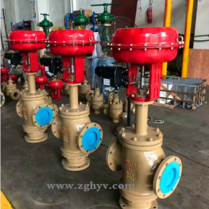 氣動(dòng)三通調(diào)節(jié)閥,是由多彈簧氣動(dòng)薄膜執(zhí)行機(jī)構(gòu)和采用圓筒型薄壁窗口形閥芯的三通合流(分流)閥組成。具有結(jié)構(gòu)簡單、重量輕、動(dòng)作靈敏、流量特性精確,配用電-氣閥門定位或氣動(dòng)閥門定位器,可實(shí)現(xiàn)對(duì)工藝管路流體介質(zhì)的自動(dòng)調(diào)節(jié)控制,氣動(dòng)三通調(diào)節(jié)閥廣泛應(yīng)用于精確控氣體、液體、蒸汽等介質(zhì)的工藝參數(shù)如壓力、流量、溫度、液位等參數(shù)保持在給定值。適合于把一種流體通過三通閥分成二路流出或把兩種流體經(jīng)三通閥合并成一種流體的工況。
